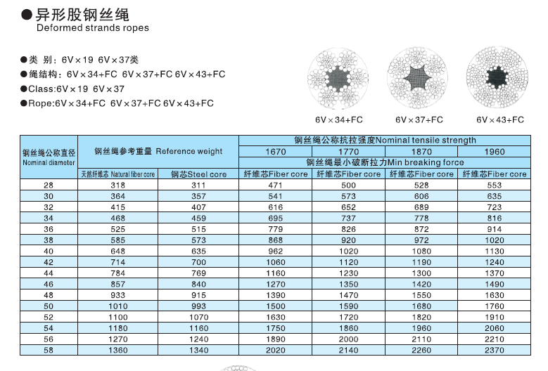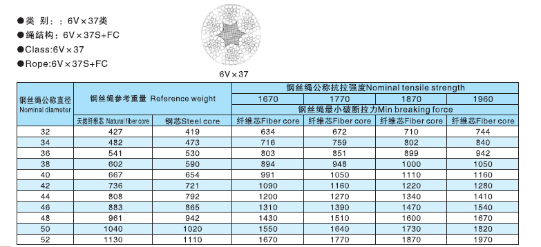 江苏正申索具有限公司 >> 产品中心 >> 钢丝绳 >> 异形股钢丝绳 >> 6V×19 6V×37类圆股钢丝绳